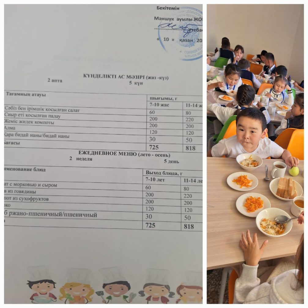 1-4 сынып оқушылары мен жаппай қамту есебінен тегін тамақтанатын оқушыларға 10.10.2025ж арналған күнделікті ас мәзірі Мәншүк ауылы ЖОББМ