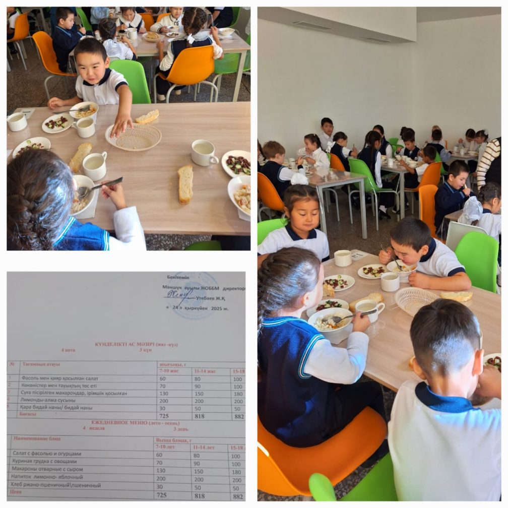 1-4 сынып оқушылары мен жаппай қамту есебінен тегін тамақтанатын оқушыларға 24.09.2025ж арналған күнделікті ас мәзірі Мәншүк ауылы ЖОББМ